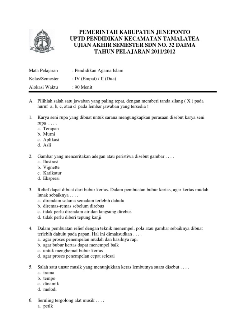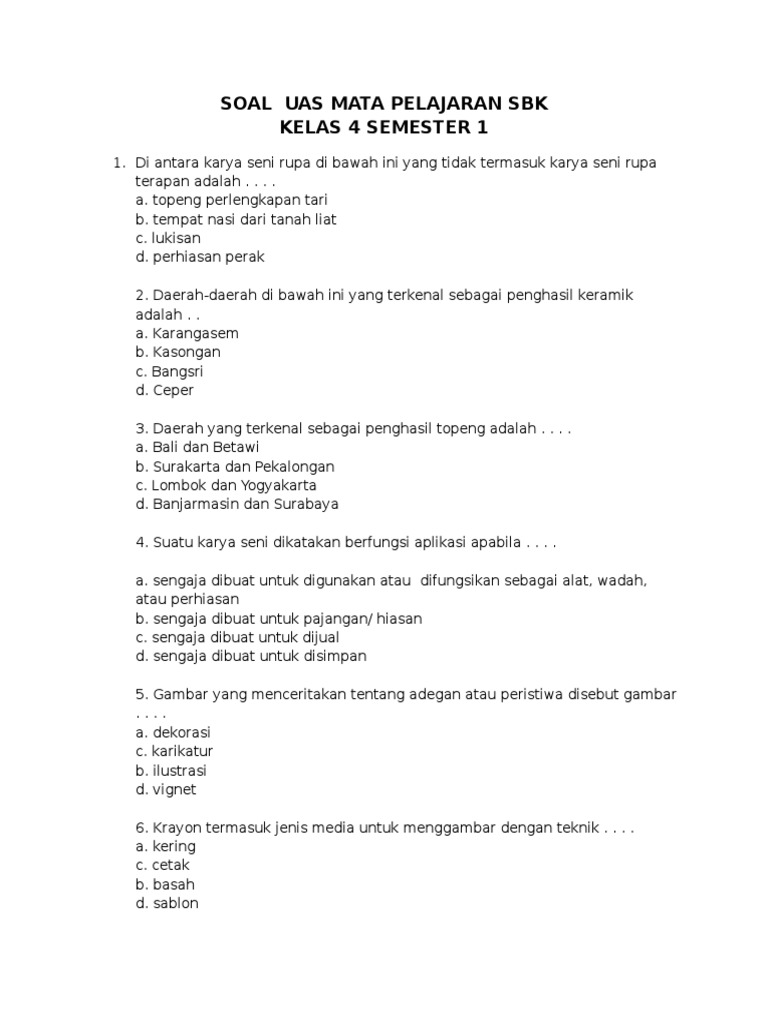 Soal Uts Sbdp Bi Ibadah Praktis Kls 5 Semester 2