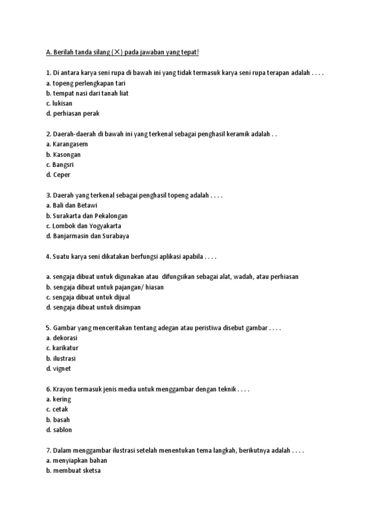 Musik Gambang Kromong merupakan percampuran budaya pribumi dan bu daya. 1 batu 2 kain 3 kertas 4 kanvas Berikut ini yang bukan merupakan media alas gambar. Masing-masing gambar atau secara berantai gambar-gambar tersebut membentuk suatu ilustrasi yang dapat menggambarkan suatu peristiwa atau cerita.